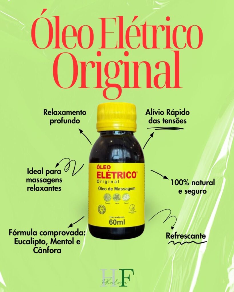 Outro destaque é o Óleo Elétrico HF Pharma, que tem como um de seus princípios ativos a cânfora, ingrediente natural amplamente reconhecido por suas propriedades analgésicas e anti-inflamatórias. O produto foi desenvolvido para oferecer alívio seguro e eficiente das dores musculares, sem risco de irritações ou danos à pele, diferentemente de algumas misturas caseiras ou produtos duvidosos encontrados no mercado, que frequentemente contêm altos índices de álcool e podem ser prejudiciais tanto à pele quanto à saúde.